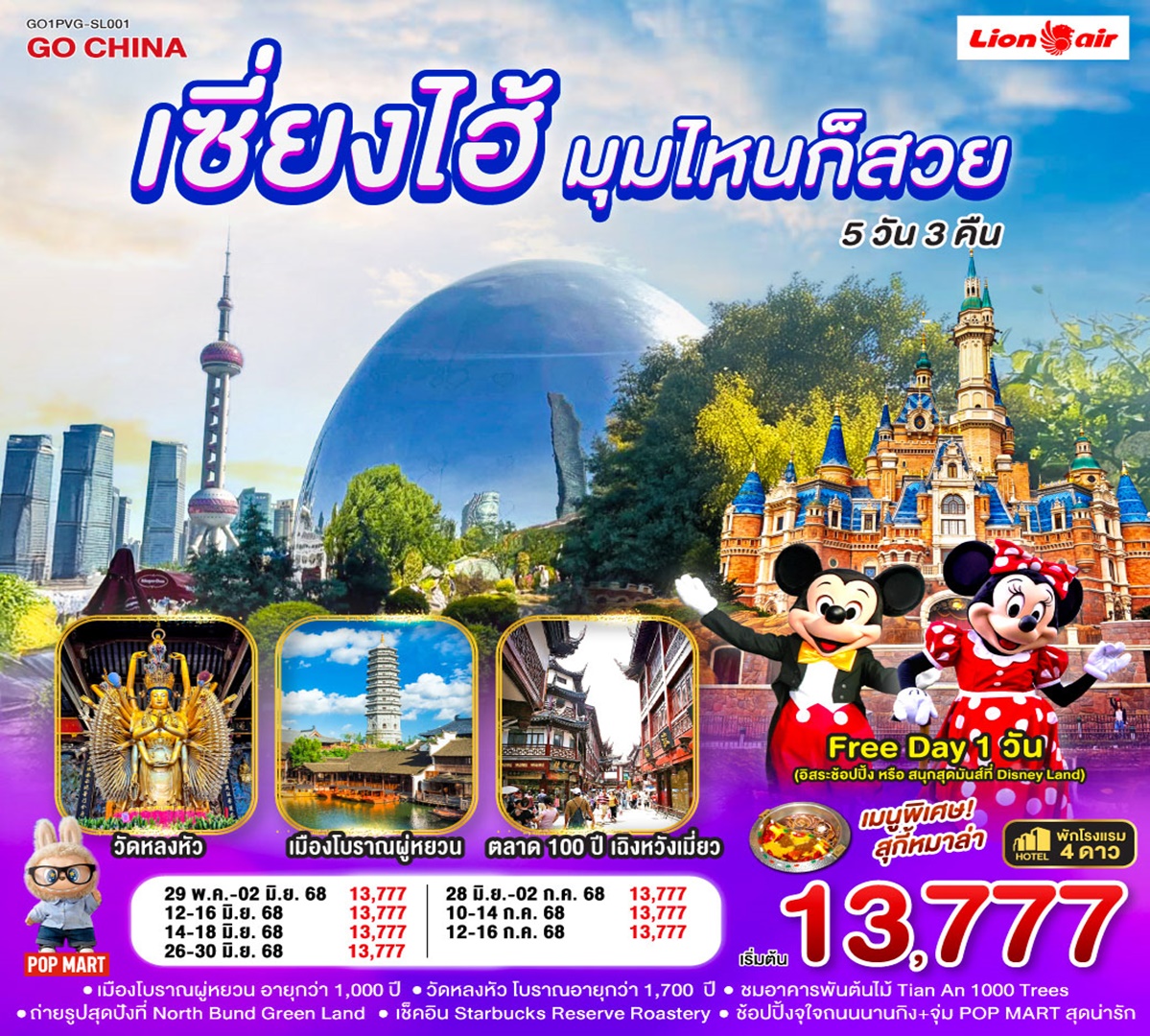 วันที่ 3 วัดหลงหัว – ร้านยางพารา – ถ่ายรูปสุดปังที่ North Bund Greenland – ร้านหยก – อาคารพันต้นไม้ Tian An 1000 Trees – หาดไวทาน – ช้อปปิ้งถนนนานกิง + ร้านPOP MART – ถ่ายรูปหอไข่มุก(ไม่รวมค่าขึ้นชม) – Disney Store Shanghai ซื้อ